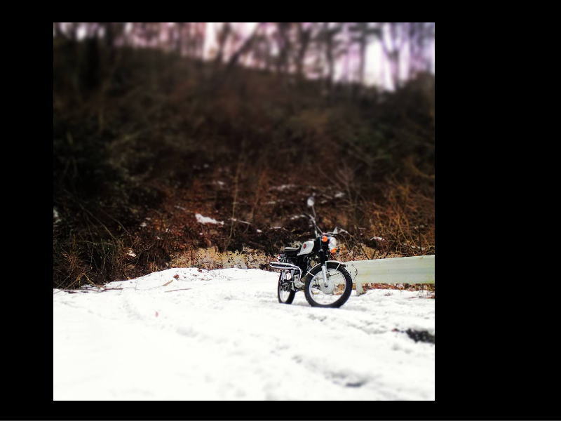 80ccだとこんな道も意外と走れるものです。もちろんトルク不足で全然ダメなところも多々ありますが、CLは原付きですからとにかく軽い。その軽さゆえに脱出できたり走れたりしてしまう。