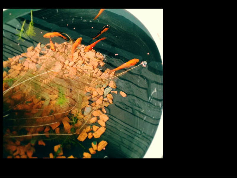 現在は小赤たちが入っています。水辺や魚たちが大好きなので、眺めていると和みます。