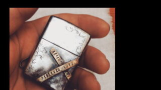 WORK 作業風景。 カスタムジッポです、完成。名前と生まれ年を打ち込んだ真鍮の板をクロスに重ねています。お客様からいただいたデザイン画の通り。古美仕上げがとても美しい。ケース両面には唐草を刻印してありますが、全て手打ちで毎回デザインを変えておりますので絶対に同... 2017.03.07 WORK