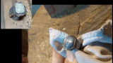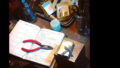 名前と生まれ年を打ち込んだ真鍮の板をクロスに重ねています。