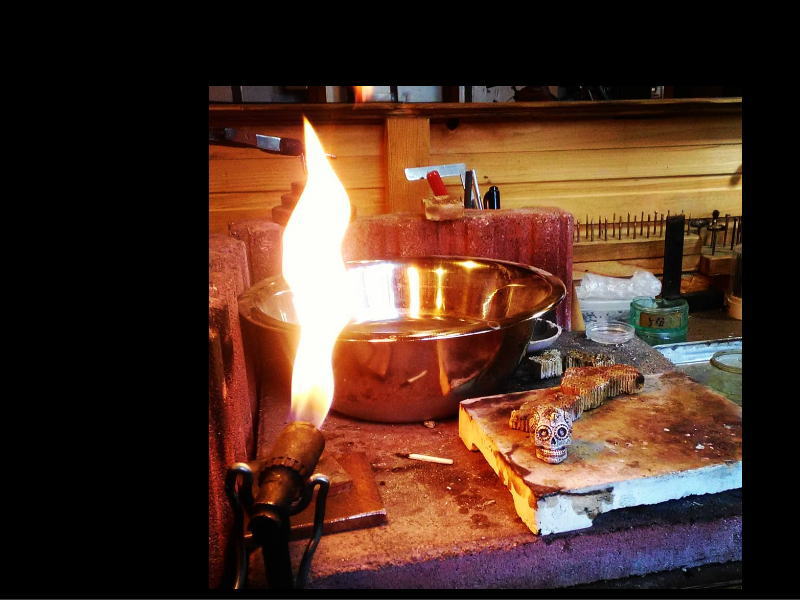 作業風景。 WORK 2018.03.102024.12.25 朝からガレージ工房で仕事です。 愛知県のお客様から、二度目のお仕事をいただきました。 指輪のサイズ縮めで、カットした継ぎ目のロウ付けをしたところ。 この後、燻して仕上げ直したら完成です。