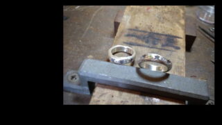 WORK 作業風景。 サイズアップのご依頼で、約四号大きくしました。今回の様に叩いて延ばすのに間に合わない時には、一度腕をカットして銀を継ぎ足します。石など留っていますとバーナーが使えませんから、石枠を開いたり起こしたりして外してから。デザインによってはそのまま... 2018.09.17 WORK