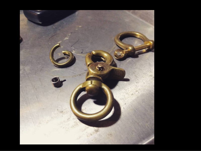 作業風景。 WORK 2020.09.212025.01.04 バネの折れた真鍮キーリングの修理中です。 いつもと同じ、分解して新しいバネ線を巻いて、組みつけて仕上げ。 真鍮ってとても味わい深くなるので、今は銀よりも好きです。
