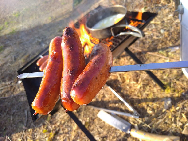 熾火で炙っただけのソーセージが最高の美味さに変わり、手軽なインスタントコーヒーでひと息つきながら、帰る時間までを楽しく過ごしました。