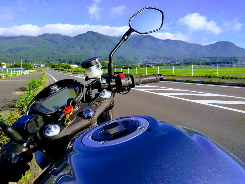 本日早朝ツーリングの帰り、山越えして帰宅する前に。夏は空と山の色が濃くて、駆け抜ける爽快感にとりつかれます。