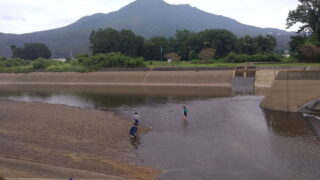 焚き火でお昼ご飯な川遊び。たくさん食べて落ち着いたころに雨が降ってきました。濡れてしまうし肌寒いのに、三人とも川に出て元気に遊びまくっています。ここはかなりの浅瀬で流れがゆるいです。でも、もしも雨がたくさん降ったら基本的には即退避が鉄則です...