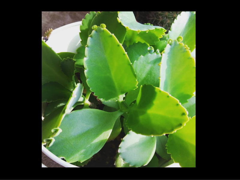 小さなガラス瓶で暮らしていた葉っぱさんを、100均のブリキのバケツに移したらあっという間に成長しました。肉厚で元気いっぱいです。