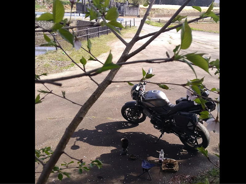桜の木の下で花びらの舞う中、コーヒーを飲んでまったり。