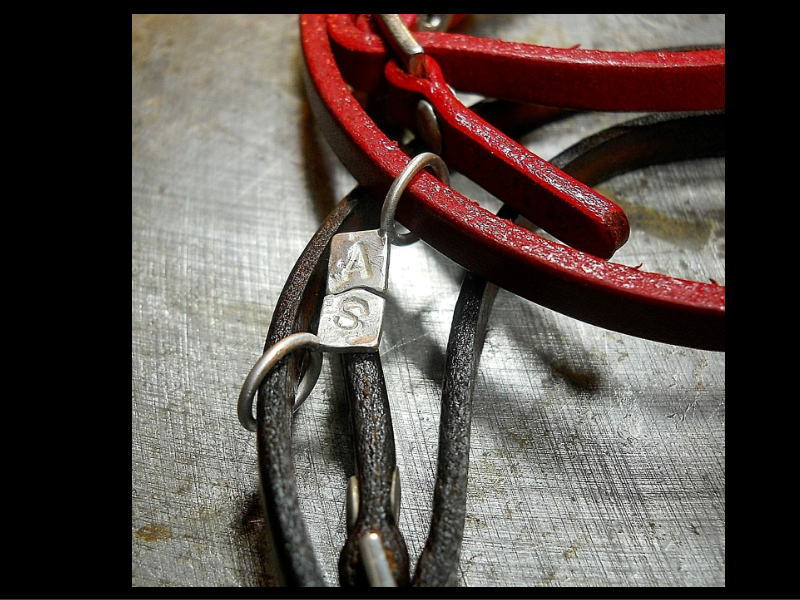 お店時代に扱っていた革のブレスを購入したカップルのお客様から、ご依頼されてそれぞれのイニシャルを刻印した銀のタグを制作して追加したもの。