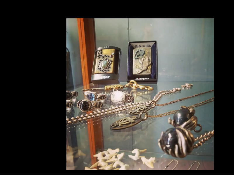 ショーケースの中には昔の作品とか未使用のルースとか、いろいろ。