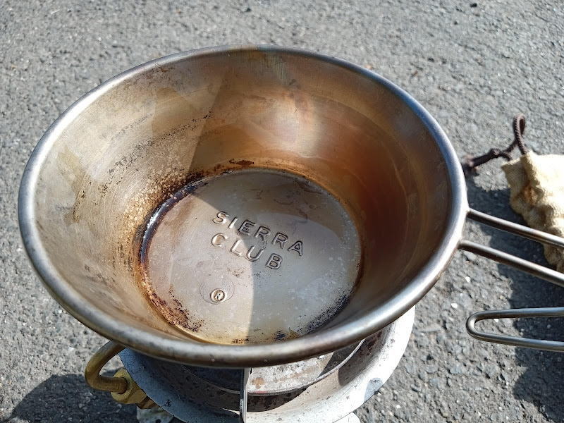 軽くて丈夫で煮炊きもできて、コンパクトなのでいろいろ使えるとは思いますけど、個人的にはあまり出番が無かった。でもなんとなく気に入っていて、ステンのマグカップもあるのですが気分で使い分けています。
