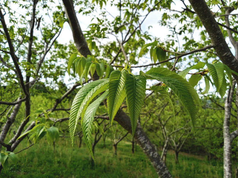 栗の木の葉っぱって好きなのです。もちろん食べても美味しいのでそういう意味でも好きなのですが、デザイン的にイガも栗の実も大好き。