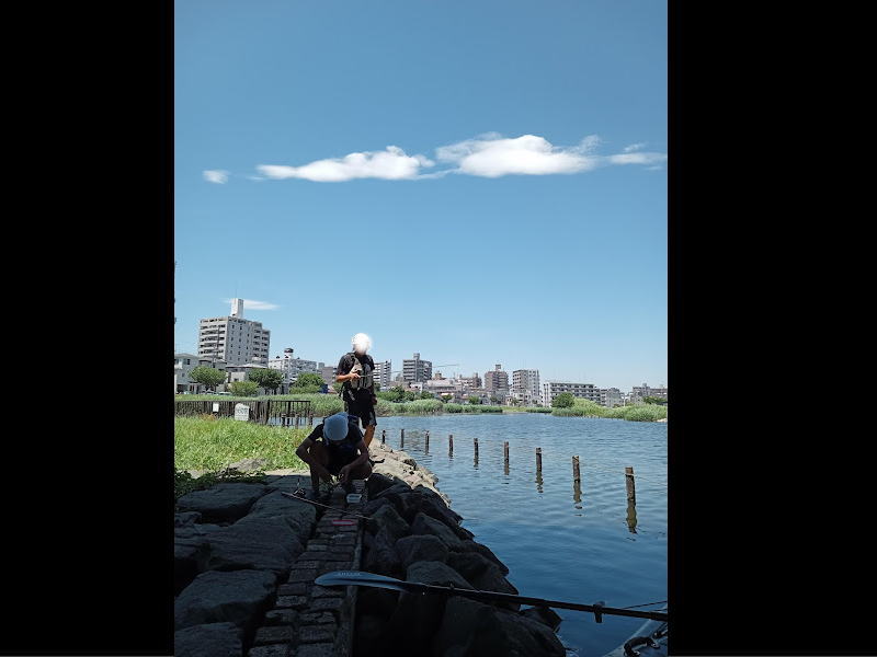 分岐を北十間川に入ると狭くなり、釣り人がいると避けながらになりました。