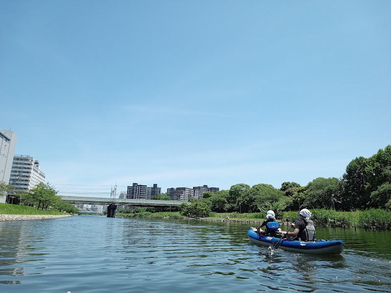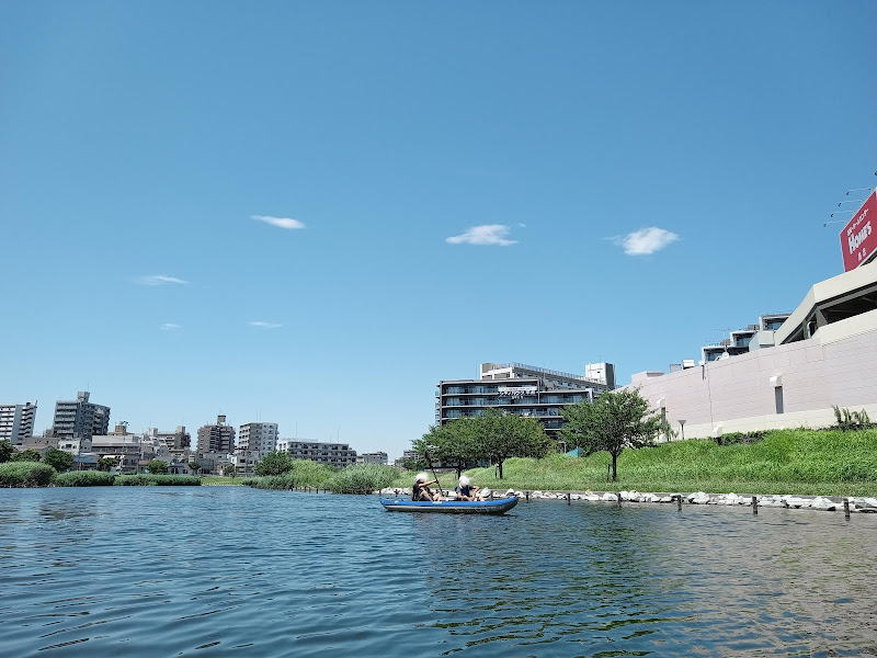 旧中川は空がとても広く感じられて気分爽快ですね。自分たちの住んでいる田舎の川もそうですが、都会の只中でこんな風にカヤックを楽しめるなんて。