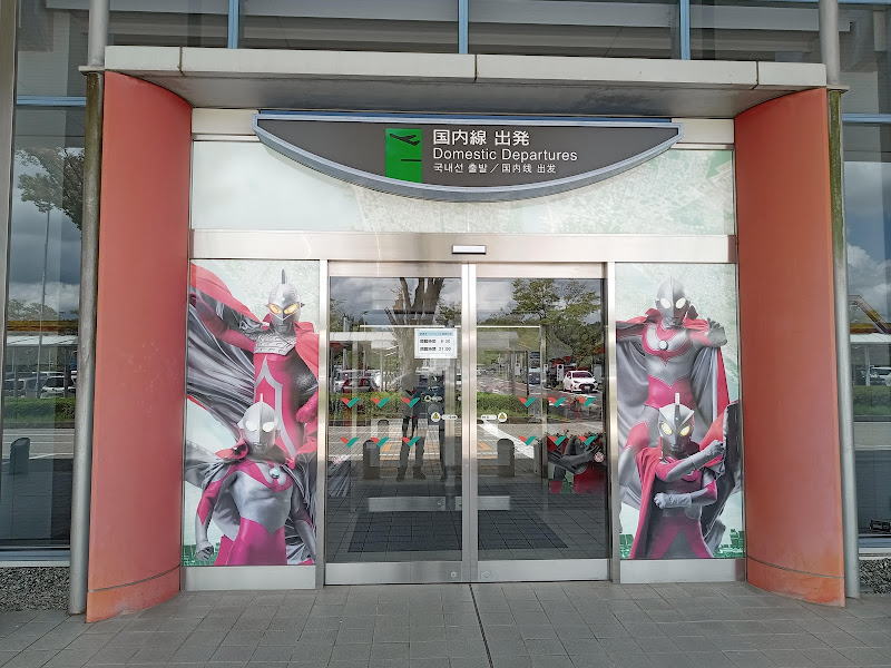 そして前日の夜にネットで見つけた目的の桃の直売店へ。。。の直前、福島空港発見。近くを通り過ぎたことしかないからなんとなく入ってみたくなり、来てみたらウルトラマン。