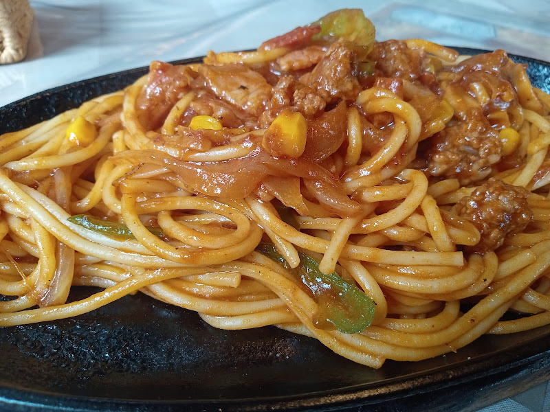 熱い鉄板で出てくるナポリタン。ちょっと焦げ目がついていたりするのがたまりません。