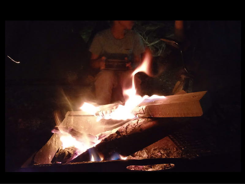 戻ったら三人とも揃っていたので焚き火と夕食の準備にかかりました。