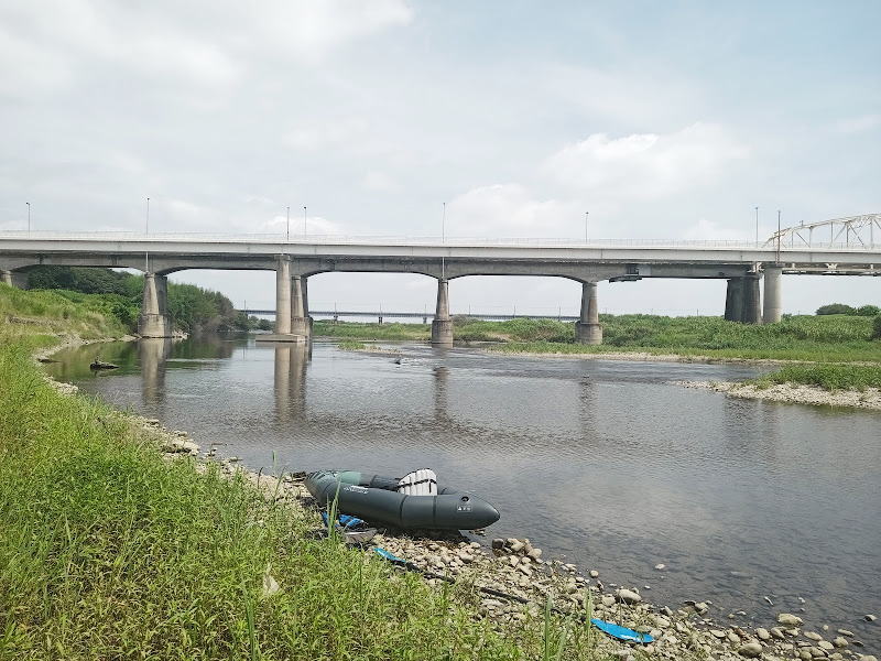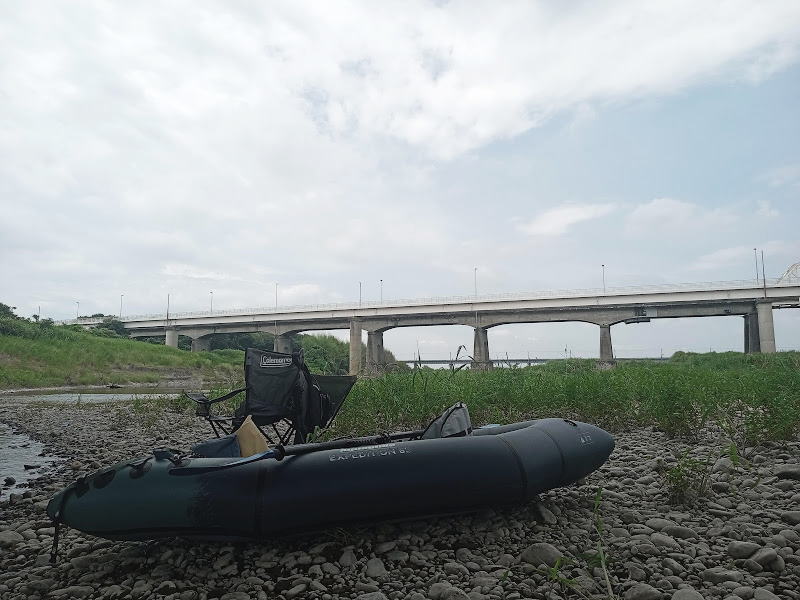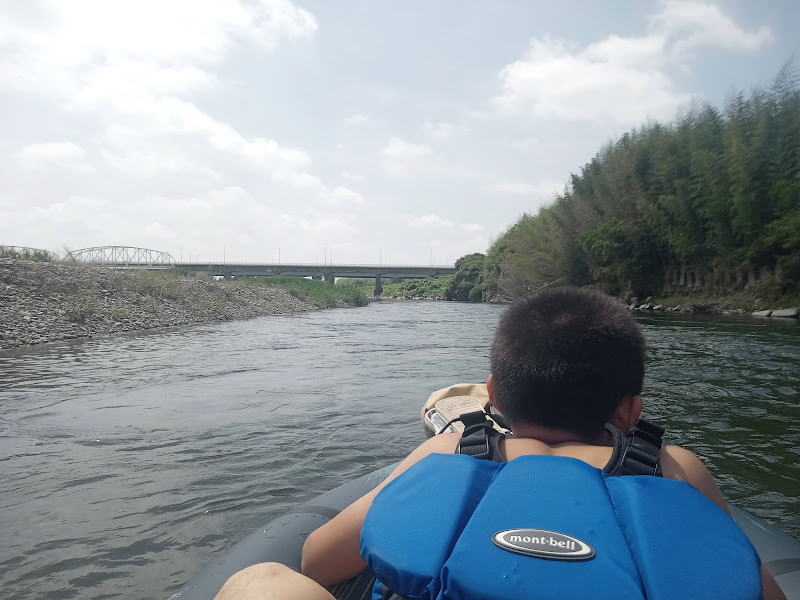 時間はちょうど午前10時、上の二人は今回は遊びに行ってしまったので小学生の三男とふたりです。いつもは川に入って泳いだり釣りをして遊んでいるのですが、アクアグライドのパックラフトを持ってきました。