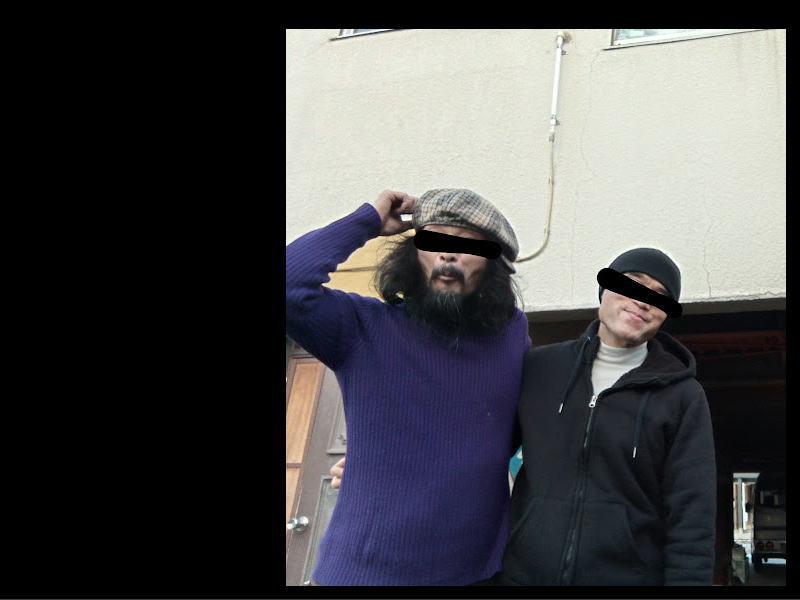 目線を入れたら怪しさがアップしました。おっさんになってもこういうノリでお会いできる江口さん(左)、つくばのお店時代に知り合った方です。