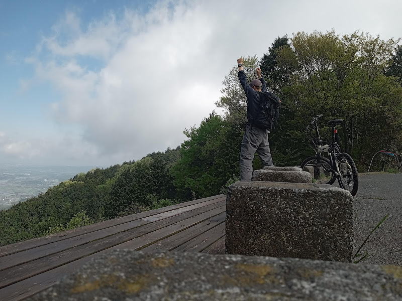 しかし坂道が予想よりきつい。。。で、とにかく歩きました。軽いので押すのは苦にならない愛車ですが、最初の入り口までもかなり遠く感じてきつい。でも頑張って登り続けてようやく林道へ。