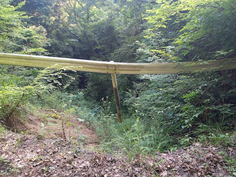 この辺で昔、ハクビシンに会って威嚇されたなあとか思い出していたら宙ぶらりんのガードレール。これ、何年かこのままだったはず。