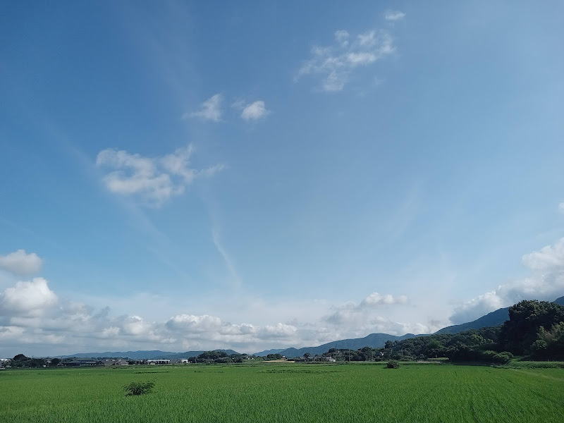 こうして見ると地元の景色も捨てたものじゃないですね。田んぼと山と夏の空。とても素敵です。