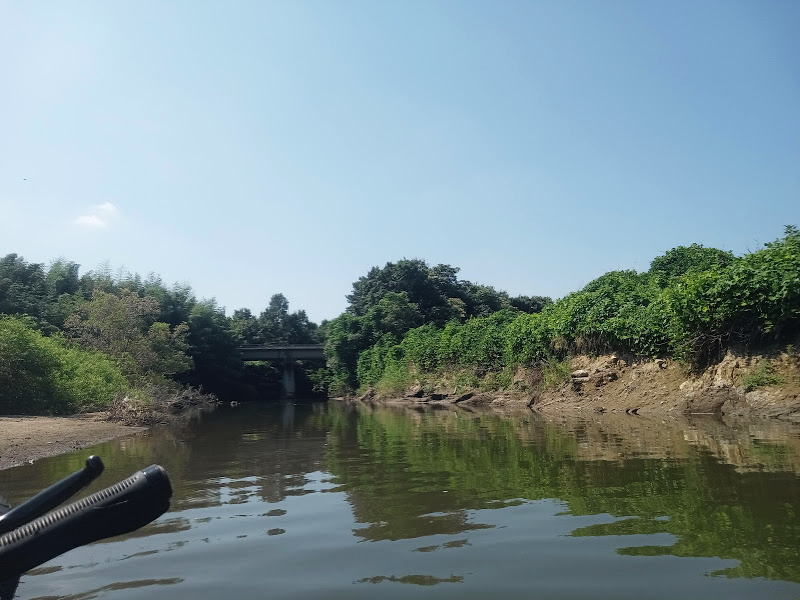 振り返るとこんな感じです。ここから最初の予定では君島橋まで行こうかと考えていたのですが、流れが予想よりもずっと緩やかで時間が掛かりすぎるため、途中でなるべく早めに上陸して戻ることにしました。