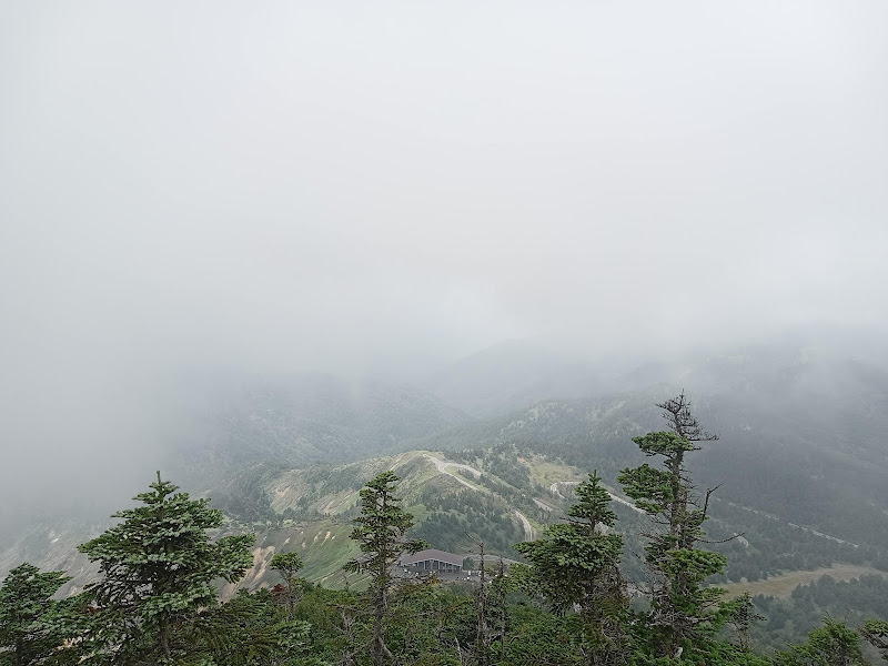 で、こちらは横手山山頂からの眺め。スカイリフト側からドライブインを見下ろしてます。