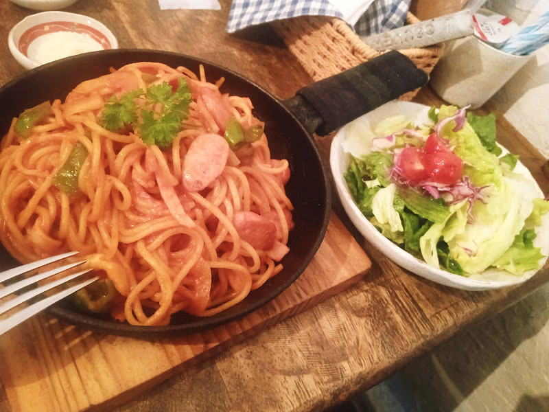 大好きなお店のひとつです、しばらくぶり。とにかくナポリタンが食べたくて本日のお昼はここにしました。スキレットで出てくるのが良いです。