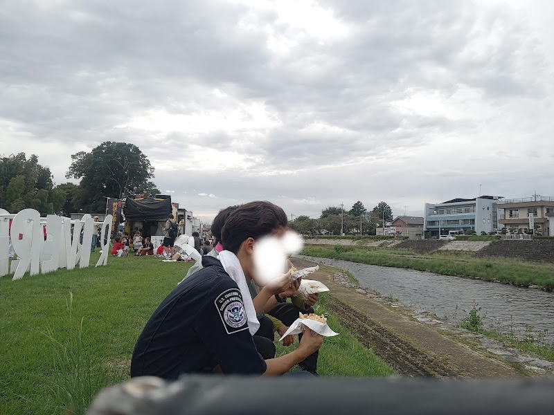 市内に入り市役所の方へ行くと、五行川沿いの広場でイベント中。