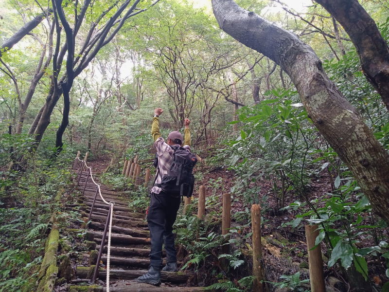 この辺りで空が明るいのに気づき、もしかして山頂は晴れているのかなと期待。