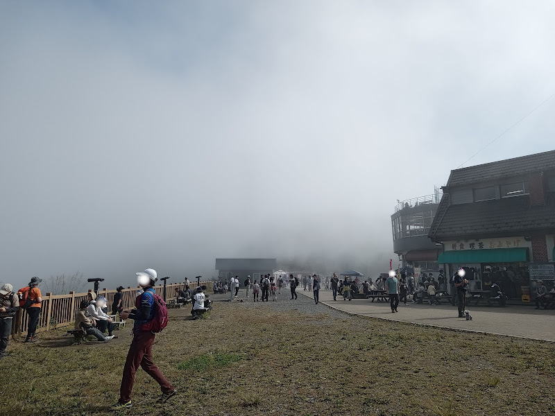 御幸ヶ原に到着。つくし湖から二時間でした、そして雲が。景色は全然見えませんが人はたくさん、やっぱり昔より混んでる気がします。