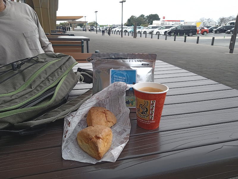 行動食にしようと思ってトライブさんのプレミアムサマーブレンドのパックに入れてきたスコーンは、小腹が空いたのでここでいただいてしまいました。長男はまだいらん。と言うのでとりあえず自分の分だけ、コーヒーと合わせて美味しく食べてから出発。