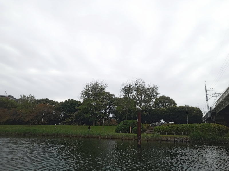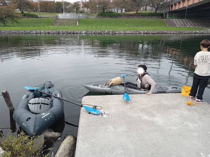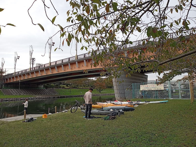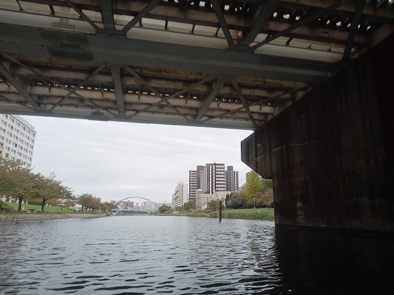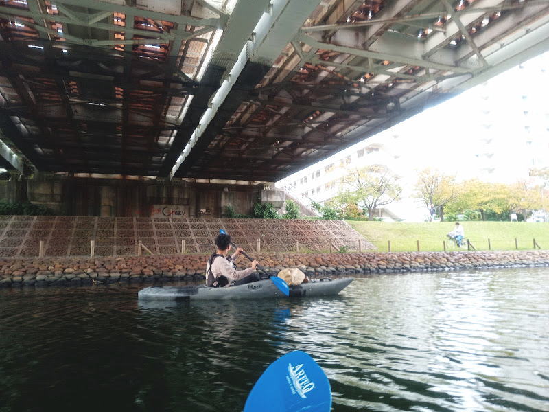 この川は漕いでいて本当に気持ち良い、大好きです。また来年も来たいなあと考えながら進みます。頭上を電車が走っていき、サイクリングするカップルさんや釣りをする親子連れがたくさん。