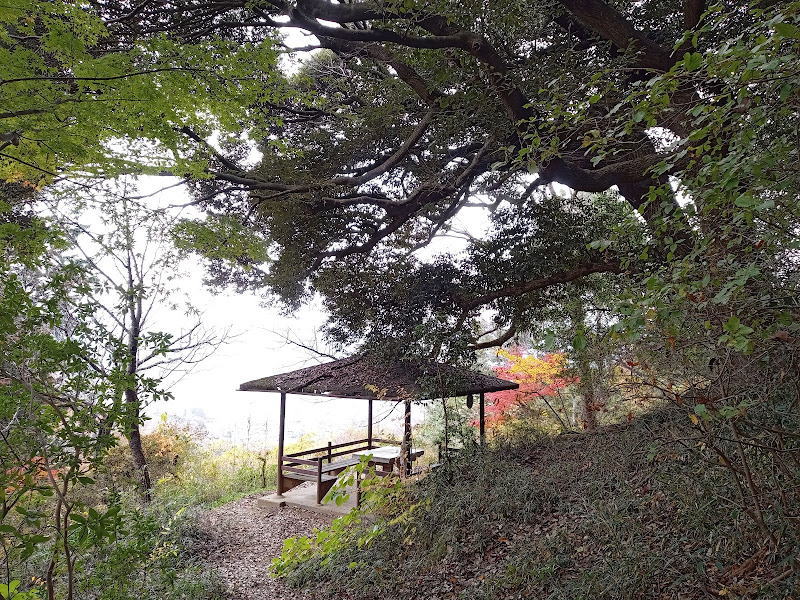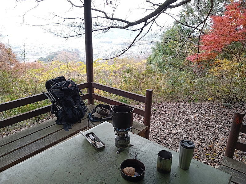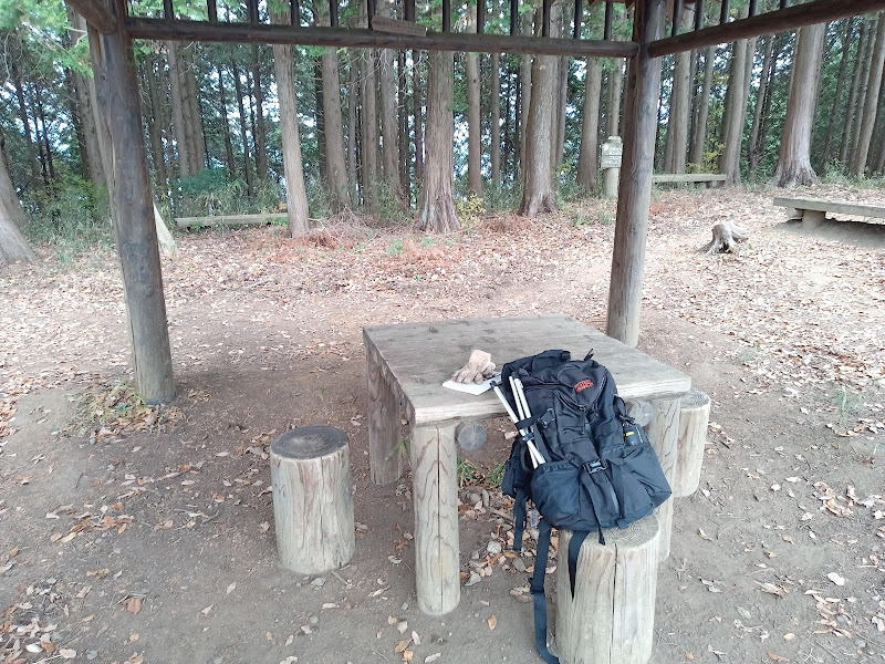 山頂の東屋で小休止です。ちょうど岩瀬側から来たご夫婦があり、景色を眺めながら同じく休憩されていました。