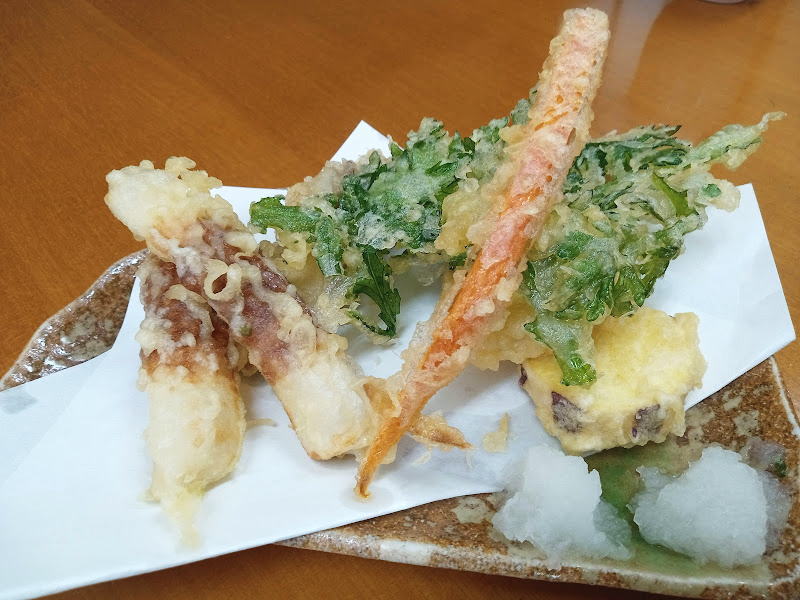 野菜天付きなのですがもうランチが終わりという事でおまけしておきましたとの事。確かに、え? こんなにのっかってますけどって量。