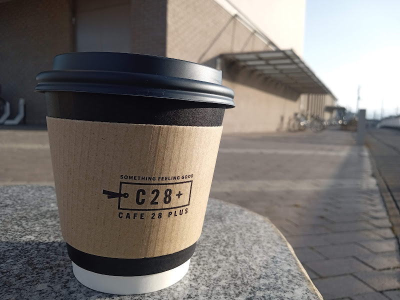 カフェ、ニーハチプラスと読みます。ホットカフェラテをテイクアウトしてまた散歩の続き。