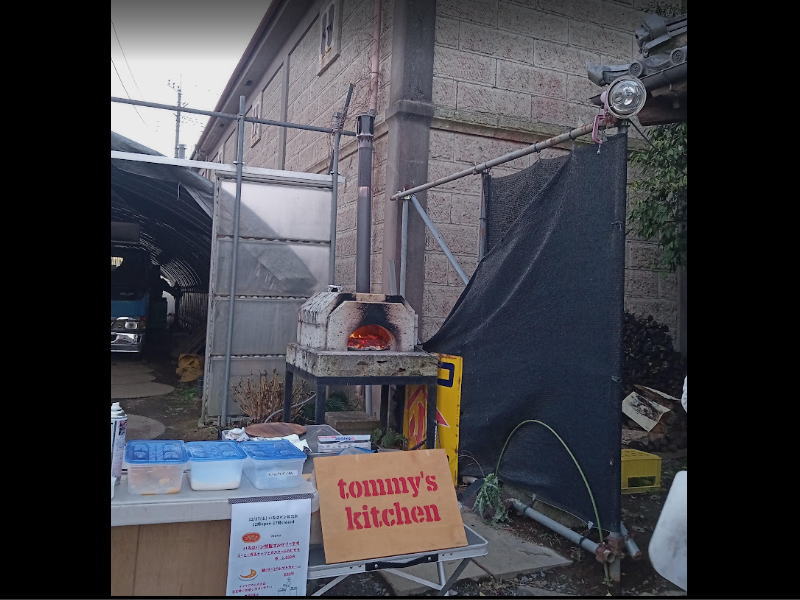 建物の隣、こんな感じになっています。一番奥に石窯があって、夕方ギリギリに行けそうです。とインスタグラムのメッセージで予約しておいたのですが、着くと同時に準備→焼き。寒いのにありがたい。