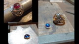 カレッジリングはしっかりと石留めされているものが多く、外すのが大変なのですが今回は運よく、石枠を開いて比較的楽に外すことができました。