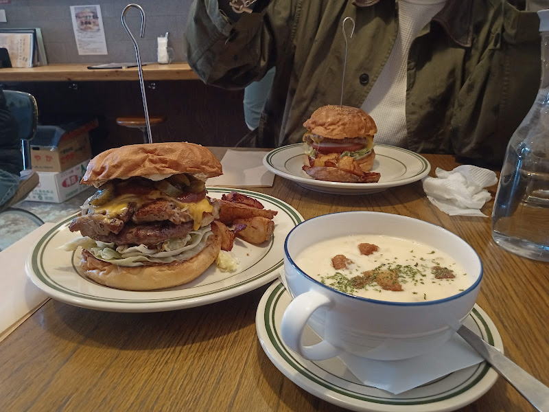 で、待ち合わせの時間になったのでM.S.Bバーガーさんへ。クラムチャウダーとバーガーで贅沢なランチ。さすがの人気で開店と同時に満席。お隣の方たちは初めてだったようで、美味い、満足と呟きながら食べていました。